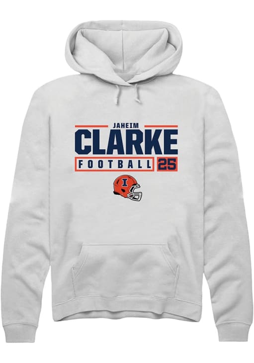 Jaheim Clarke Rally Mens White Illinois Fighting Illini NIL Stacked Box Hooded Sweatshirt