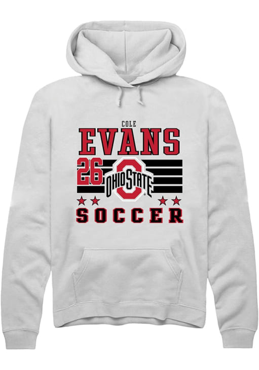 Cole Evans Rally Mens White Ohio State Buckeyes NIL Striped Hooded Sweatshirt