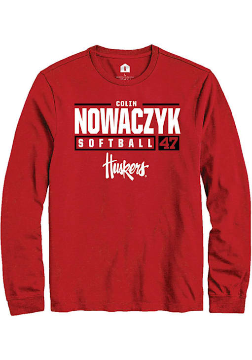 Colin Nowaczyk Rally Mens Red Nebraska Cornhuskers NIL Stacked Box Tee