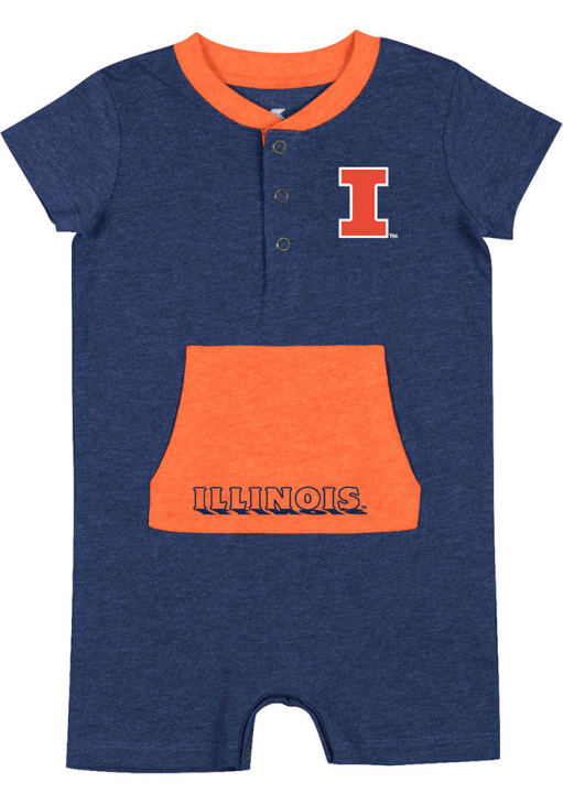 Your little Fighting Illini fan will look adorable in this Baby Navy Blue Illinois Fighting Illini Wheeler Romper One Piece! This Illinois Fighting Illini Romper features a screen print left chest.