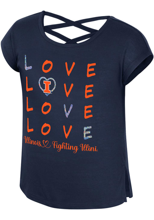 Show your support for Fighting Illini in this Girls Navy Blue Illinois Fighting Illini Short Sleeve Fashion Tee! This Ember Fashion T-Shirt features a screenprint team graphic with rhinestones that pairs perfect with any wardrobe. Get ready to show pride for your favorite team as you cheer "Go, Illini, Go"