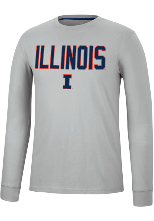 Show your Illinois Fighting Illini spirit in this Illinois Grey T Shirt! This Illinois Spackler Long Sleeve T Shirt makes a great layer for cooler nights cheering on the Fighting Illini. Featuring a screen print team graphic on front chest, this Illinois Fighting Illini Long Sleeve Tee is an essential addition for every fan. Go, Illini, Go!