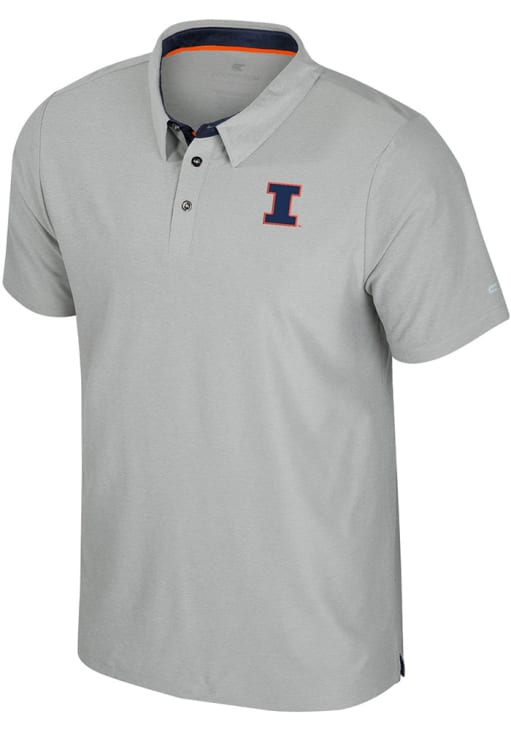 Enhance your professional style with this striking Mens Grey Short Sleeve Polo Shirt! Showcase your team pride among colleagues with this exceptional Illinois Grey Atomic Short Sleeve Polo. Stand out and make a statement in this Illinois Fighting Illini Short Sleeve Polo, featuring a screenprint team graphic on left chest that adds a touch of distinction to your look.