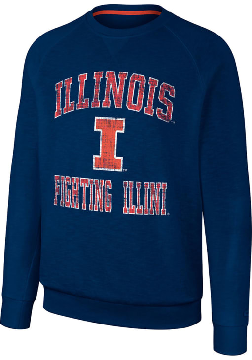 Gear up for the ultimate game day experience with this remarkable Illinois Fighting IlliniMens Navy Blue Reggie Crew Sweatshirt! Designed with the true fan in mind, this Fighting Illini Long Sleeve Crew Sweatshirt features a screen print team graphic on front chest. Stay warm and comfortable with this Mens Illinois Fighting Illini Crew Sweatshirt.