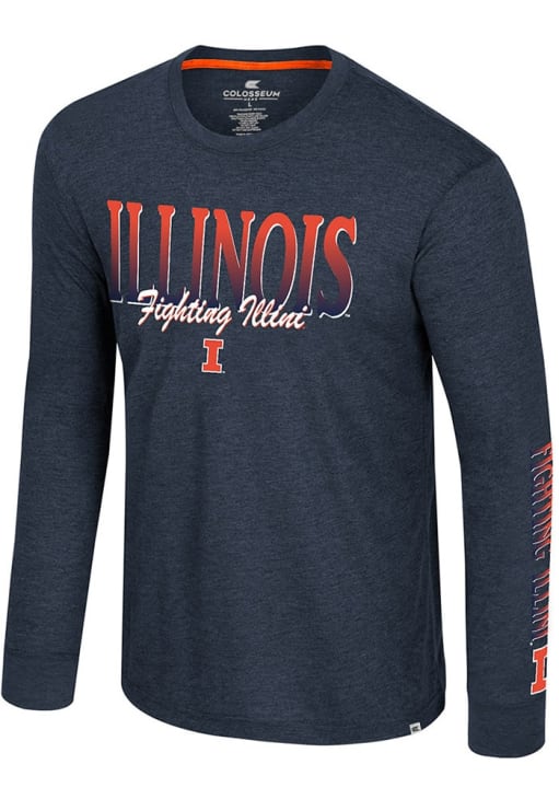Show your Illinois Fighting Illini spirit in this Illinois Navy Blue T Shirt! This Illinois Frank Long Sleeve T Shirt makes a great layer for cooler nights cheering on the Fighting Illini. Featuring a washed screen printed team graphic on center chest, this Illinois Fighting Illini Long Sleeve Tee is an essential addition for every fan. Go, Illini, Go!