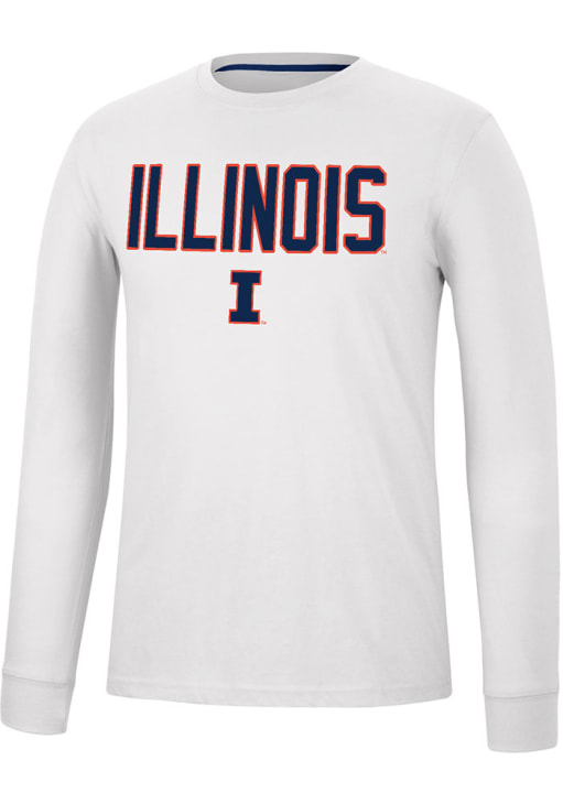 Show your Illinois Fighting Illini spirit in this Illinois White T Shirt! This Illinois Spackler Long Sleeve T Shirt makes a great layer for cooler nights cheering on the Fighting Illini. Featuring a screen print team graphic on front chest, this Illinois Fighting Illini Long Sleeve Tee is an essential addition for every fan. Go, Illini, Go!