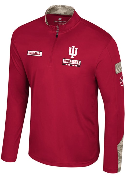 Embrace the warmth and showcase your Hoosiers pride with our Indiana Hoosiers Long Sleeve Qtr Zip Pullover. This Mens Cardinal OHT Company Long Sleeve Pullover offers a printed team name on right chest and printed team logo over team name on left chest and printed American flag over graphic on left arm for the perfect combination of comfort and style. Elevate your everyday look with this must-have Indiana Hoosiers Long Sleeve Qtr Zip Pullover.