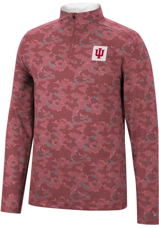 Embrace the warmth and showcase your Hoosiers pride with our Indiana Hoosiers Long Sleeve Qtr Zip Pullover. This Mens Cardinal Tivo Camo Long Sleeve Pullover offers a rubberized screen print team logo on left chest for the perfect combination of comfort and style. Elevate your everyday look with this must-have Indiana Hoosiers Long Sleeve Qtr Zip Pullover.