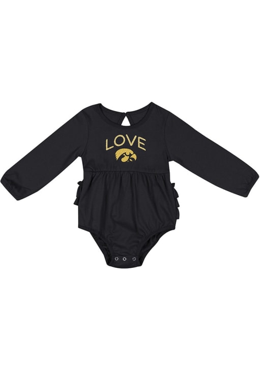 Product Details Product Details Three tier ruffles at backKeyhole w/ buttonSnap closure at bottomElastic at leg openingsGlitter puff print center chestPerfect for any young sports fan!100% COTTONImport, Domestic Officially Licensed Get ready for gameday with this Baby Black Iowa Hawkeyes Katinka LS One Piece! Your little Hawkeyes will be warm and cozy at the game.