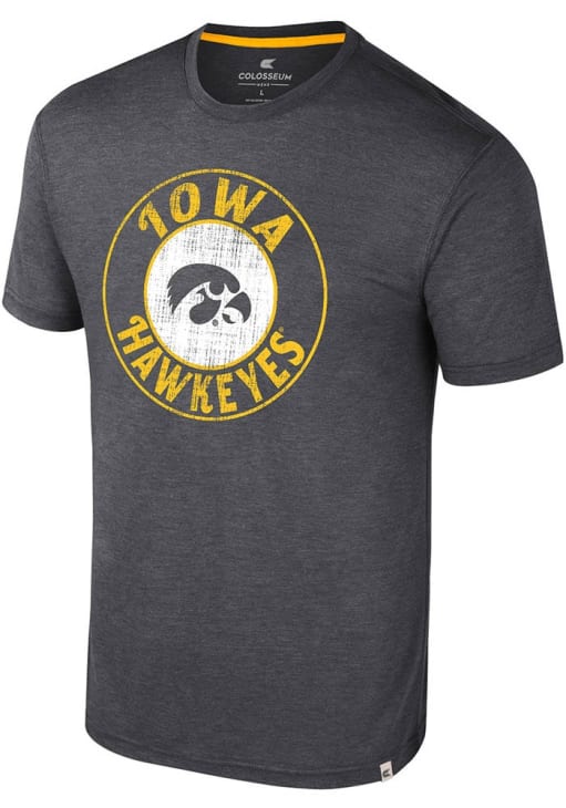 Support your Iowa Hawkeyes in this Black Short Sleeve Fashion Tee! This Virtual Reality Fashion T Shirt features a team logo distressed wash out printed on front chest. Be ready to yell "Go Hawkeyes" when you wear this Hawkeyes Short Sleeve Fashion T Shirt in your favorite stadium or on the street.
