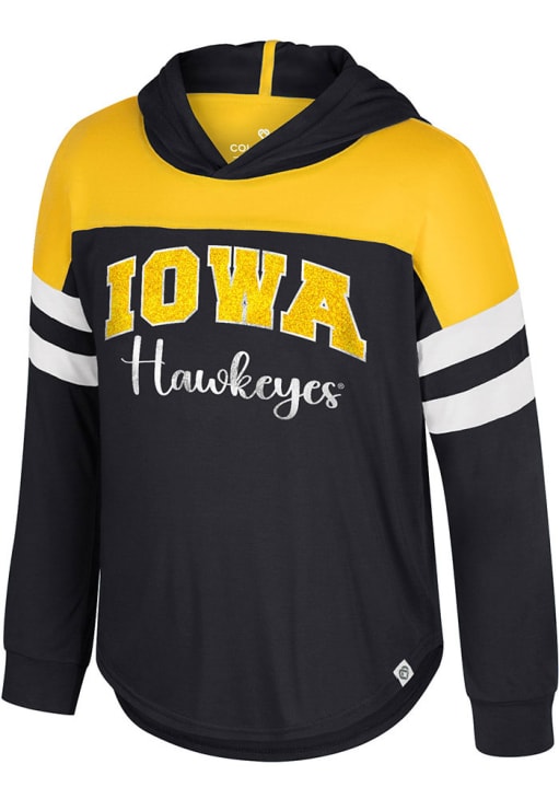 Show your style at school in this Girls Black Iowa Hawkeyes Reflection Long Sleeve T-shirt! This Long Sleeve Tee features a second color glitter print w/ silver foil. You'll be cozy and comfortable head to the game or class with the Hawkeyes Girls Hawkeyes Long Sleeve T-shirt.