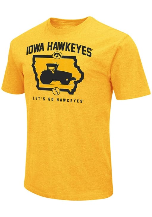 Display your team spirit with this remarkable Iowa Hawkeyes Colosseum Gold America Needs Famers Short Sleeve T Shirt! The Hawkeyes Short Sleeve Tee showcases a screen print of team name over America Needs Farmers graphic and "Lets Go Hawkeyes" that truly sets it apart. Stand out from the crowd and proudly declare your allegiance to the Hawkeyes with this exceptional Gold Hawkeyes T Shirt. Go Hawkeyes!
