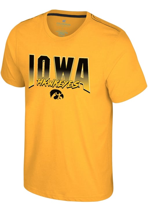 Display your team spirit with this remarkable Iowa Hawkeyes Colosseum Gold Manhattan Project Short Sleeve T Shirt! The Hawkeyes Short Sleeve Tee showcases a screenprint team name and logo on front chest with team mascot on back that truly sets it apart. Stand out from the crowd and proudly declare your allegiance to the Hawkeyes with this exceptional Gold Hawkeyes T Shirt. Go Hawkeyes!