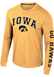Show your Iowa Hawkeyes spirit in this Hawkeyes Gold T Shirt! This Hawkeyes Reese Long Sleeve T Shirt makes a great layer for cooler nights cheering on the Hawkeyes. Featuring a rubberized print of arched team name over mascot on front chest with team slogan on left sleeve, this Iowa Hawkeyes Long Sleeve Tee is an essential addition for every fan. Go Hawkeyes!