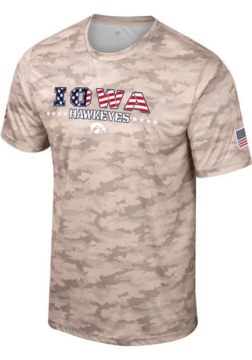 Stay cool and display your Iowa Hawkeyes spirit in this Green OHT Desert T Shirt. This Short Sleeve is the perfect Tee for working out, heading to class, or cheering on the Hawkeyes. Showcasing a screenprint team name with USA flag fill with team name and logo across chest, there's no mistaking your Iowa Hawkeyes pride in this Hawkeyes OHT Desert T Shirt!