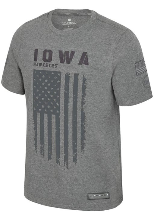 Display your team spirit with this remarkable Iowa Hawkeyes Colosseum Grey OHT Active Duty Short Sleeve T Shirt! The Hawkeyes Short Sleeve Tee showcases a screen printed team graphic on front chest that truly sets it apart. Stand out from the crowd and proudly declare your allegiance to the Hawkeyes with this exceptional Grey Hawkeyes T Shirt. Go Hawkeyes!