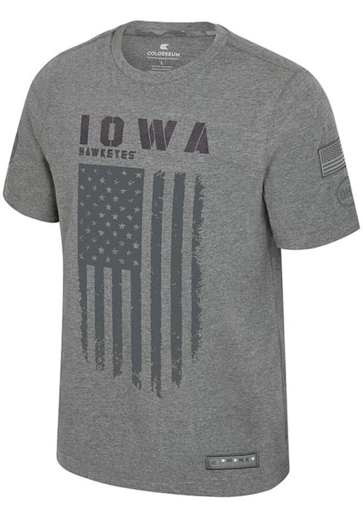 Display your team spirit with this remarkable Iowa Hawkeyes Grey OHT Active Duty Short Sleeve T Shirt! The Hawkeyes Short Sleeve Tee showcases a screen printed team graphic on front chest that truly sets it apart. Stand out from the crowd and proudly declare your allegiance to the Hawkeyes with this exceptional Grey Hawkeyes T Shirt. Go Hawkeyes!