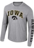 Show your Iowa Hawkeyes spirit in this Hawkeyes Grey T Shirt! This Hawkeyes Reese Long Sleeve T Shirt makes a great layer for cooler nights cheering on the Hawkeyes. Featuring a rubberized print of arched team name over mascot on front chest with team slogan on left sleeve, this Iowa Hawkeyes Long Sleeve Tee is an essential addition for every fan. Go Hawkeyes!