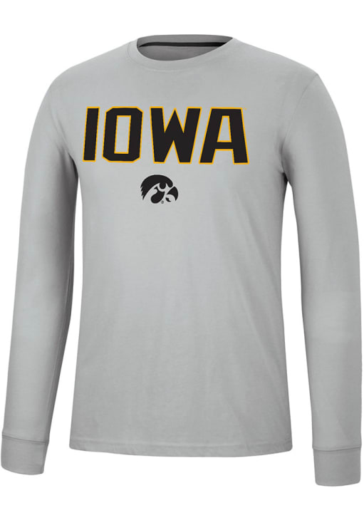 Show your Iowa Hawkeyes spirit in this Hawkeyes Grey T Shirt! This Hawkeyes Spackler Long Sleeve T Shirt makes a great layer for cooler nights cheering on the Hawkeyes. Featuring a screen print team graphic on front chest, this Iowa Hawkeyes Long Sleeve Tee is an essential addition for every fan. Go Hawkeyes!