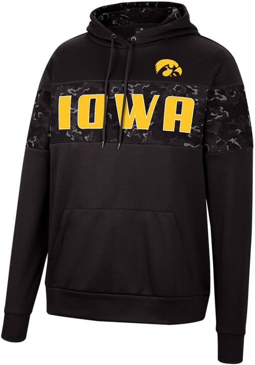 Make a bold statement in this Iowa Hawkeyes Black Tonal Wager Pullover Long Sleeve Hood! This Hawkeyes Long Sleeve Hoodie features a rubberized screen print team name in tonal on front chest. Go Hawkeyes!