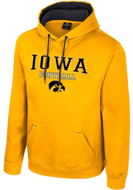 Embrace your Hawkeyes pride and showcase your team spirit with confidence in this Iowa Hawkeyes Long Sleeve Hoodie! Stay warm and stylish with the Hawkeyes Mens Gold Charlie GCC Football Hooded Sweatshirt. Designed with embroidered logo and wordmark on center chest, this Hawkeyes Long Sleeve Hoodie is a must-have for dedicated fans.