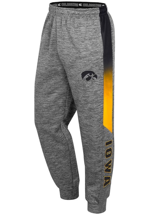 Proudly display your Hawkeyes pride in comfort with these Iowa Hawkeyes Mens Grey Pants! Whether you're hitting the golf course or enjoying a leisurely day out, these stylish Hawkeyes The Gang Track Pants are the perfect choice. With a rubberized logo and wordmark on left leg, these Hawkeyes Pants will give you all the spirit you need!