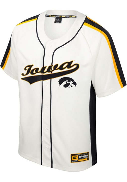 There will be no mistaking your Hawkeyes support when you wear this Iowa Hawkeyes Mens White Ruth Jersey! Look great and stand out from the crowd in this Iowa Hawkeyes Baseball Jersey, which features a tackle twill school name and primary logo on across chest and secondary team logo on upper back.