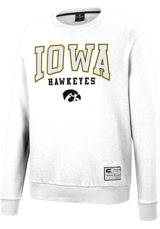 Gear up for the ultimate game day experience with this remarkable Iowa HawkeyesMens White Scholarship Fleece Crew Sweatshirt! Designed with the true fan in mind, this Hawkeyes Long Sleeve Crew Sweatshirt features a twill applique team name and logo on front chest. Stay warm and comfortable with this Mens Hawkeyes Hawkeyes Crew Sweatshirt.