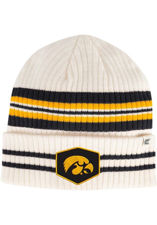 Stay in style during the cold part of the year with this Iowa Hawkeyes Mens Trainer Striped Beanie Knit Hat! You can show your Hawkeyes spirit with this Knit Hat that features a team logo patch on cuff with team color striping on body of knit.