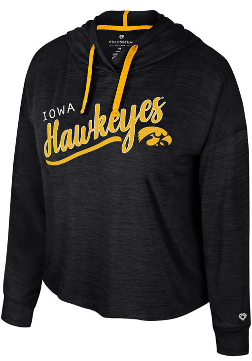 Embrace your Hawkeyes pride and showcase your team spirit with confidence in this Iowa Hawkeyes Long Sleeve Hoodie! Stay warm and stylish with the Hawkeyes Womens Black Marina Hooded Sweatshirt. Designed with screenprint team name and logo on center chest, this Hawkeyes Long Sleeve Hoodie is a must-have for dedicated fans.