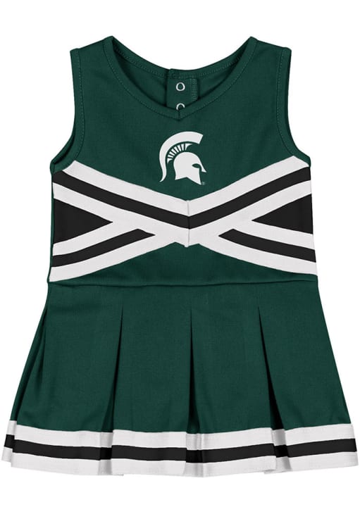 Product Details Product Details Attached bloomerSnap closureRubberized printPerfect for any young sports fan!100% PolyesterImport, Domestic Officially Licensed Get ready for gameday with this Baby Green Michigan State Spartans Carousel Cheer Dress! Your little Spartans will be warm and cozy at the game.