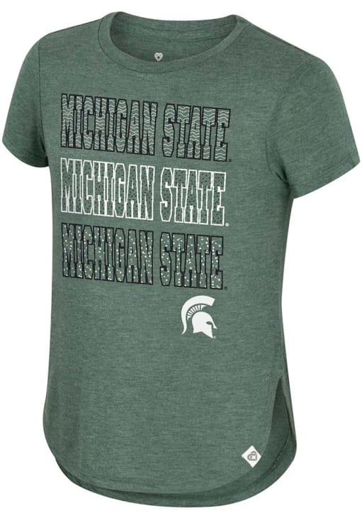 Show your support for Spartans in this Girls Green Michigan State Spartans Short Sleeve Fashion Tee! This Hathaway Fashion T-Shirt features a screen print team graphic that pairs perfect with any wardrobe. Get ready to show pride for your favorite team as you cheer "Go Spartans"