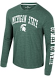Show your Michigan State Spartans spirit in this MSU Green T Shirt! This MSU Reese Long Sleeve T Shirt makes a great layer for cooler nights cheering on the Spartans. Featuring a rubberized print of arched team name over mascot on front chest with team slogan on left sleeve, this Michigan State Spartans Long Sleeve Tee is an essential addition for every fan. Go Spartans!