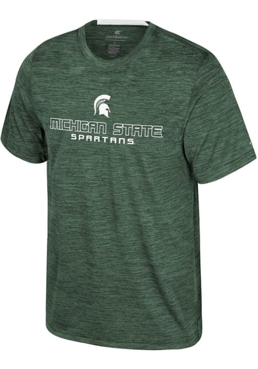Stay cool and display your Michigan State Spartans spirit in this Green Theoretical T Shirt. This Short Sleeve is the perfect Tee for working out, heading to class, or cheering on the Spartans. Showcasing a screenprint team name and graphic on front chest, there's no mistaking your Michigan State Spartans pride in this Spartans Theoretical T Shirt!