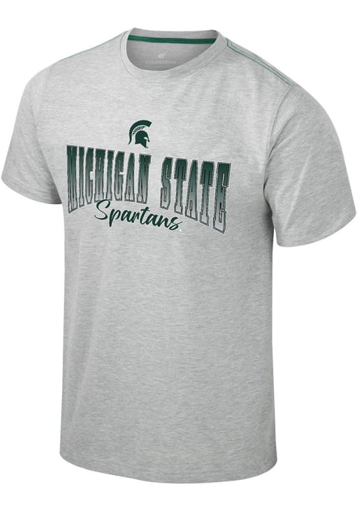 Display your team spirit with this remarkable Michigan State Spartans Grey Roy Short Sleeve T Shirt! The MSU Short Sleeve Tee showcases a screenprint primary logo, school name, and team name across front that truly sets it apart. Stand out from the crowd and proudly declare your allegiance to the Spartans with this exceptional Grey MSU T Shirt. Go Spartans!