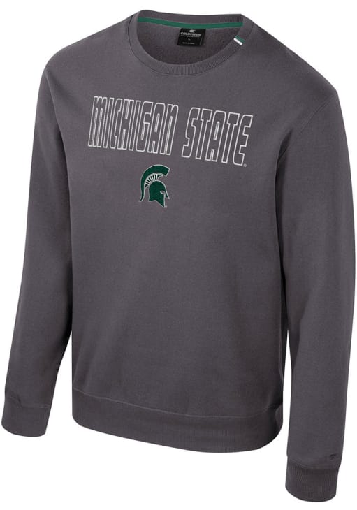 Gear up for the ultimate game day experience with this remarkable Michigan State SpartansMens Charcoal Zion Crew Sweatshirt! Designed with the true fan in mind, this Spartans Long Sleeve Crew Sweatshirt features a team graphic twill applique on front chest. Stay warm and comfortable with this Mens MSU Spartans Crew Sweatshirt.
