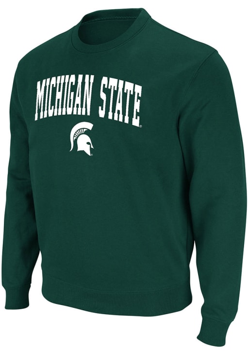Gear up for the ultimate game day experience with this remarkable Michigan State SpartansMens Green Arched Mascot Crew Sweatshirt! Designed with the true fan in mind, this Spartans Long Sleeve Crew Sweatshirt features a screen printed arched team name over logo on center chest. Stay warm and comfortable with this Mens MSU Spartans Crew Sweatshirt.