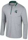 Embrace the warmth and showcase your Spartans pride with our Michigan State Spartans Long Sleeve Qtr Zip Pullover. This Mens Green Blackett Long Sleeve Pullover offers a screenprint team logo on left chest for the perfect combination of comfort and style. Elevate your everyday look with this must-have Michigan State Spartans Long Sleeve Qtr Zip Pullover.
