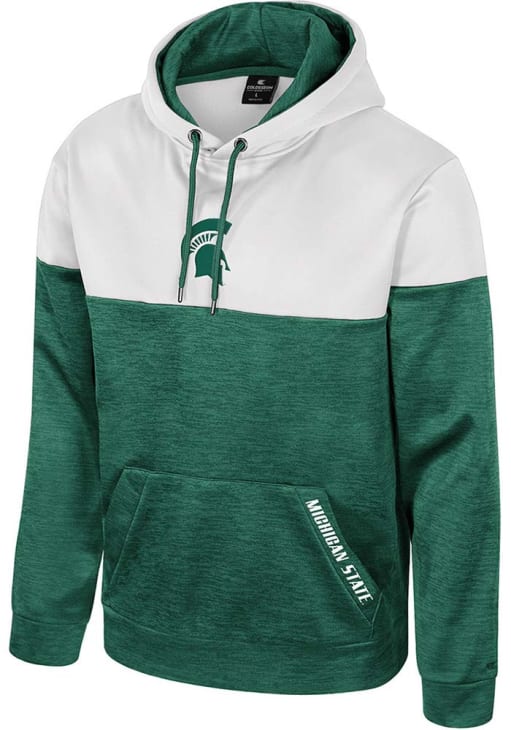 Make a bold statement in this Michigan State Spartans Green Cypher Colorblock Fleece Long Sleeve Hood! This MSU Long Sleeve Hoodie features a team logo rubberized print on front chest with team name on left side of pocket. Go Spartans!