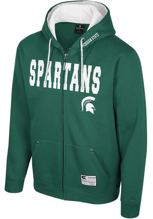 Embrace your Spartans spirit with pride in this Michigan State Spartans Long Sleeve Full Zip Jacket. This Mens Green Harrison Long Sleeve Full Zip showcases a applique patch of school name with mascot across front chest. You'll want to wear this Michigan State Spartans Long Sleeve Full Zip Jacket every day.