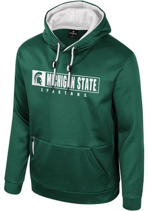 Make a bold statement in this Michigan State Spartans Green Mainframe Long Sleeve Hood! This MSU Long Sleeve Hoodie features a team graphic rubberized printed on front chest. Go Spartans!