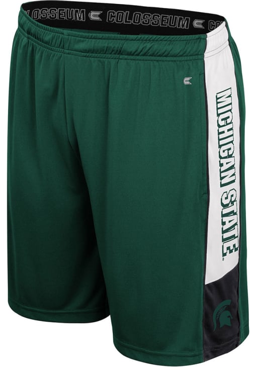 Take your workout to the next level in these Michigan State Spartans Mens Green Quantum Shorts! These MSU Shorts are great for any Spartans fan who wants to show off their team spirit during their fitness routine. These Michigan State Spartans Shorts feature a screenprint team name and logo on left leg.