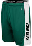 Take your workout to the next level in these Michigan State Spartans Mens Green Sanest Choice Shorts! These MSU Shorts are great for any Spartans fan who wants to show off their team spirit during their fitness routine. These Michigan State Spartans Shorts feature a rubberized print of team name on left leg.