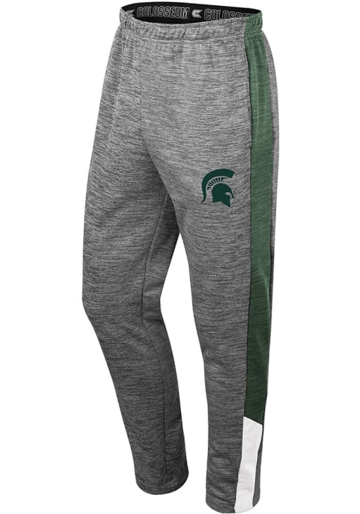 Proudly display your Spartans pride in comfort with these Michigan State Spartans Mens Grey Pants! Whether you're hitting the golf course or enjoying a leisurely day out, these stylish MSU Dozzer Tapered Track Pants are the perfect choice. With a team logo embroidered on left hip, these MSU Pants will give you all the spirit you need!