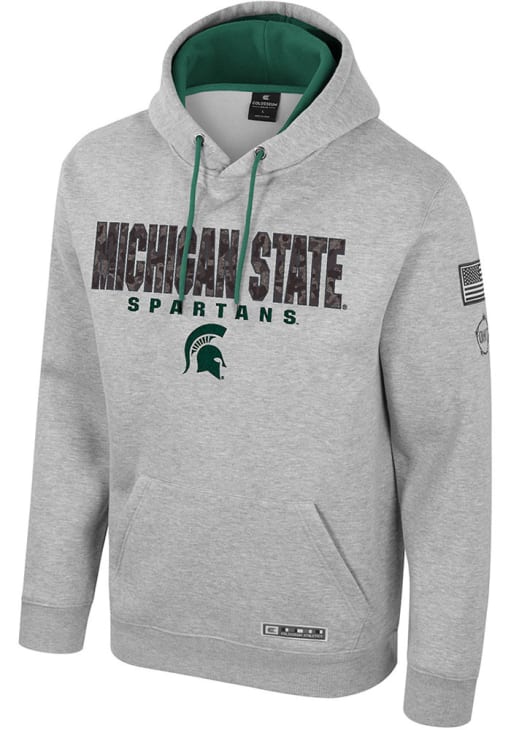 Embrace your Spartans pride and showcase your team spirit with confidence in this Michigan State Spartans Long Sleeve Hoodie! Stay warm and stylish with the MSU Mens Grey OHT Oorah Hooded Sweatshirt. Designed with team name camo applique on front chest and logo embroidered on front chest, this Spartans Long Sleeve Hoodie is a must-have for dedicated fans.
