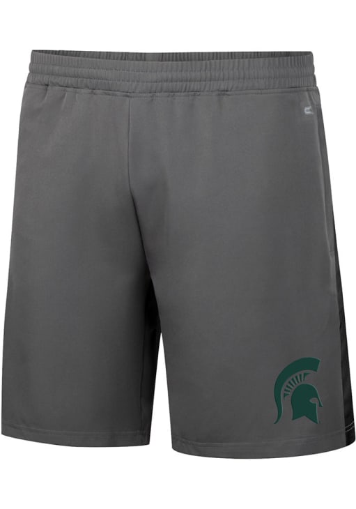 Take your workout to the next level in these Michigan State Spartans Mens Grey Smails Woven Shorts! These MSU Shorts are great for any Spartans fan who wants to show off their team spirit during their fitness routine. These Michigan State Spartans Shorts feature a rubberized screen print team logo on left leg.
