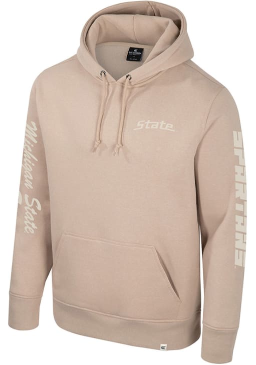 Embrace your Spartans pride and showcase your team spirit with confidence in this Michigan State Spartans Long Sleeve Hoodie! Stay warm and stylish with the MSU Mens Tan Great Outdoors Hooded Sweatshirt. Designed with team logo waterbased printed on left chest and school name on right sleeve and team name on left sleeve, this Spartans Long Sleeve Hoodie is a must-have for dedicated fans.