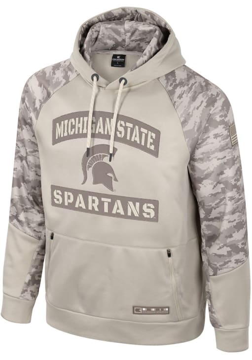 Make a bold statement in this Michigan State Spartans Tan OHT Mojave Long Sleeve Hood! This MSU Long Sleeve Hoodie features a team name and logo twill applique on front chest. Go Spartans!