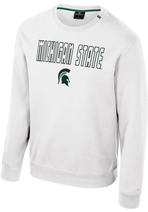 Gear up for the ultimate game day experience with this remarkable Michigan State SpartansMens White Zion Crew Sweatshirt! Designed with the true fan in mind, this Spartans Long Sleeve Crew Sweatshirt features a team graphic twill applique on front chest. Stay warm and comfortable with this Mens MSU Spartans Crew Sweatshirt.