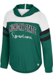 Show your style at school in this Toddler Girls Green Michigan State Spartans Reflection T Shirt! This Long Sleeve Tee features a second color glitter print w/ silver foil. You'll be cozy and comfortable head to the game or class with the Spartans Toddler Girls MSU T Shirt.